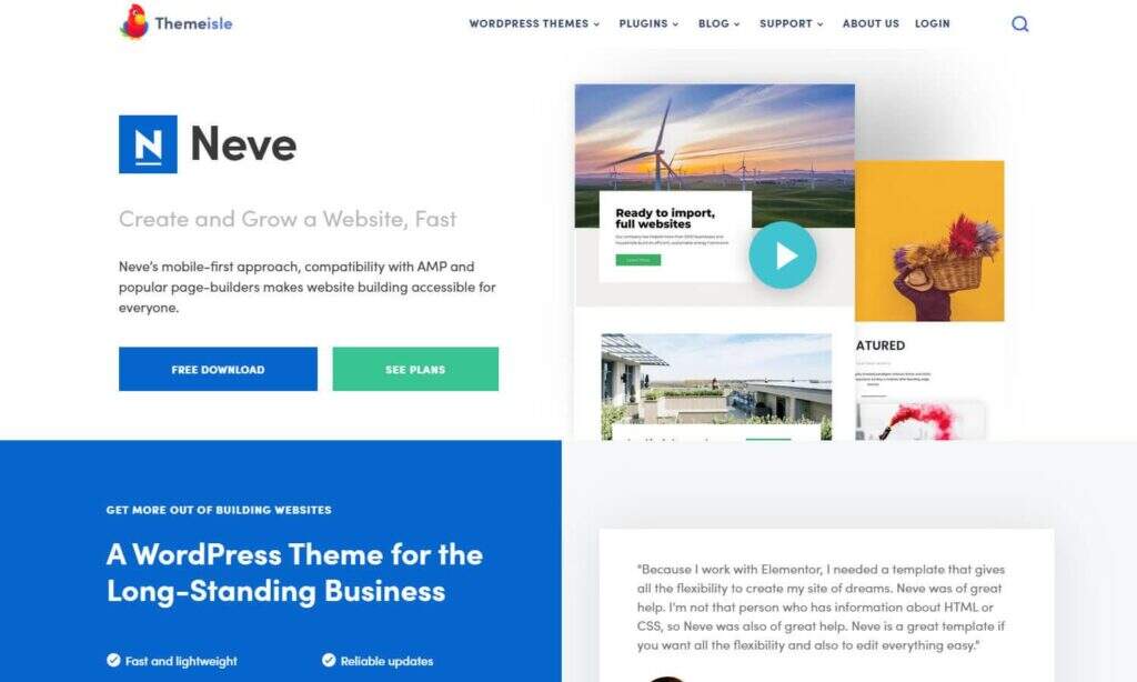 Neve是快速发展您的网站的主题。这通常是大多数初创公司想要做的,所以它是一个很棒的免费主题,有一些高级选项。该主题是轻量级的,在页眉和页脚中具有自定义设计。它还与几乎所有流行的页面构建器集成。