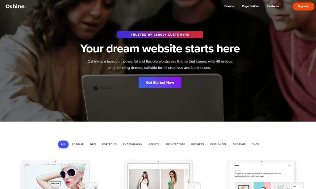 Oshine主题在为自由职业者提供多种构建网站的选项方面做得非常出色。大多数人会使用这个主题来制作作品集,而这通常是自由职业者所需要的。包括超过46个演示,所以这应该让您朝着正确的方向开始。