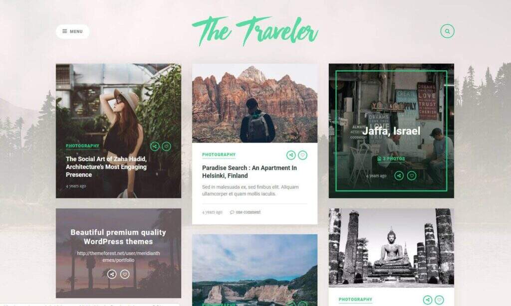 The Traveler有一个好名字,因为所有的博客文章都像日记一样组织起来。这是一个快速的主题,具有令人惊叹的基于网格的格式。对于那些不想花大量时间进行开发但想花更多时间旅行的人来说,这是一个基本的解决方案。