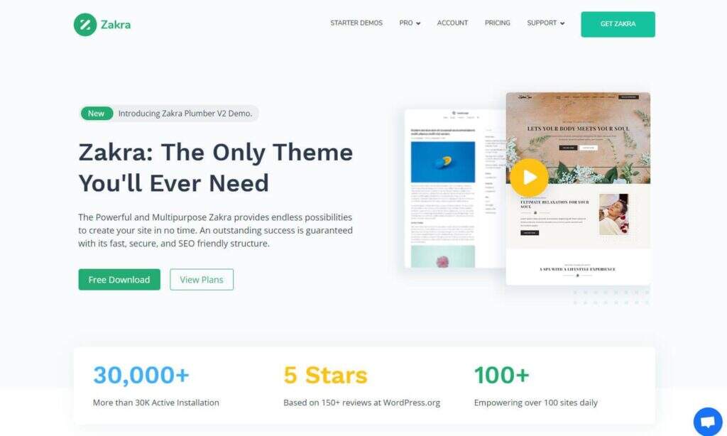 Zakra主题因其干净的界面、轻量级的加载以及用于快速在线获取内容的多个演示而为许多设计师提供了诀窍。您可以出售您的设计或管理一个常规的商业网站来预订新客户。此外,它是一个免费的主题。