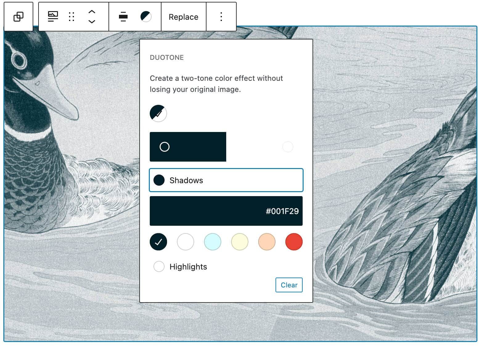保存您的文件并在区块编辑器中检查结果。您应该只看到一个双色调滤镜。
