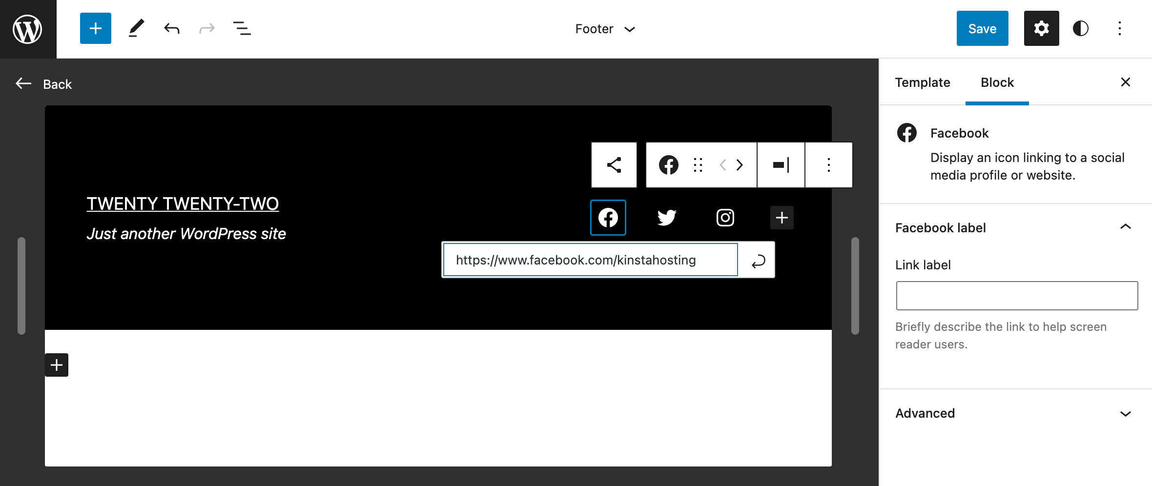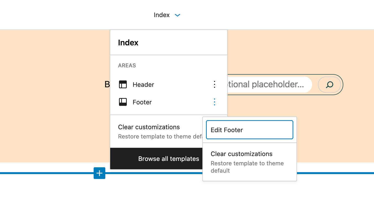 假设您想从Index和Single Post模板中删除默认页脚,并将其替换为不同的2022区块样板。