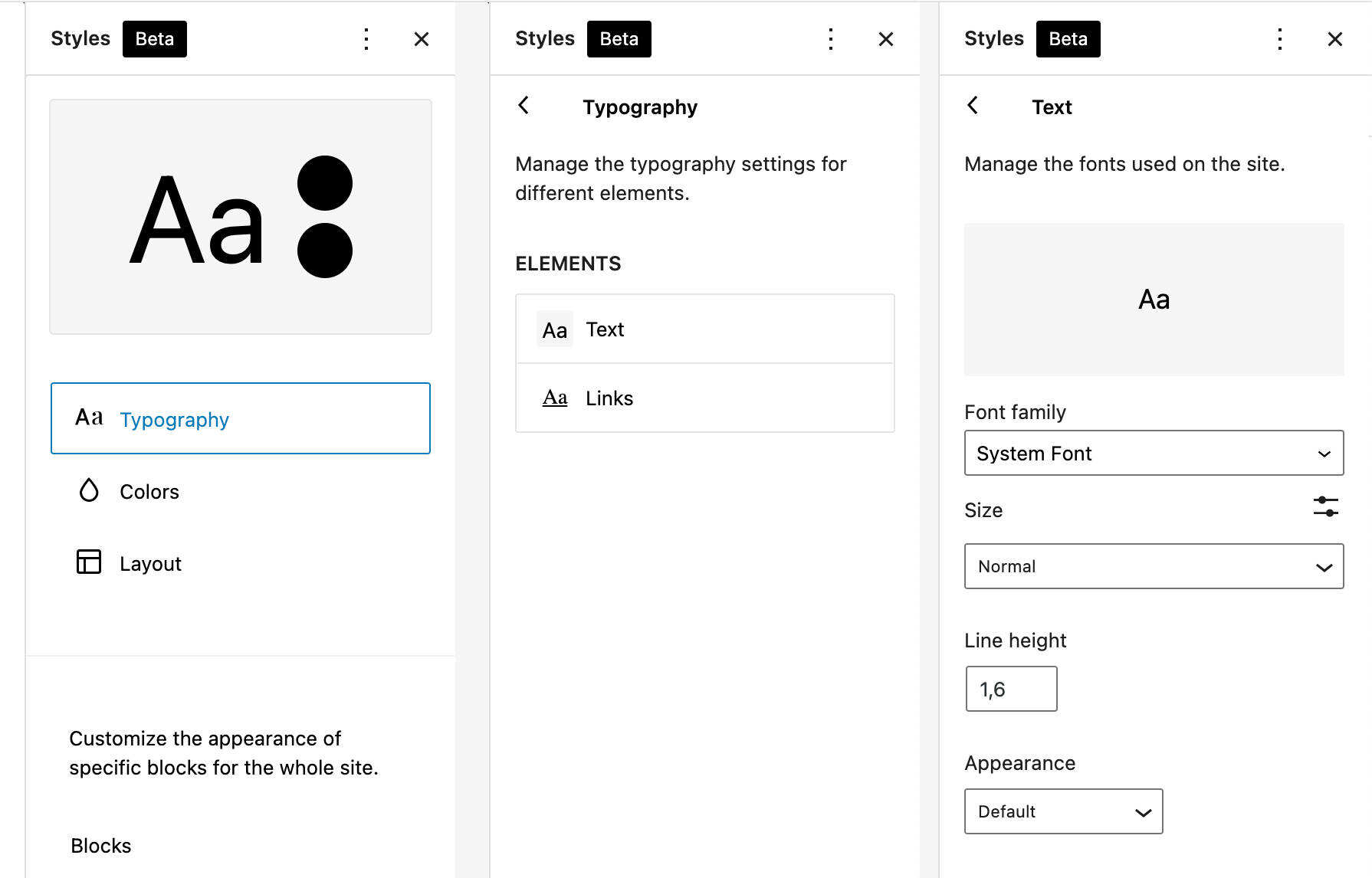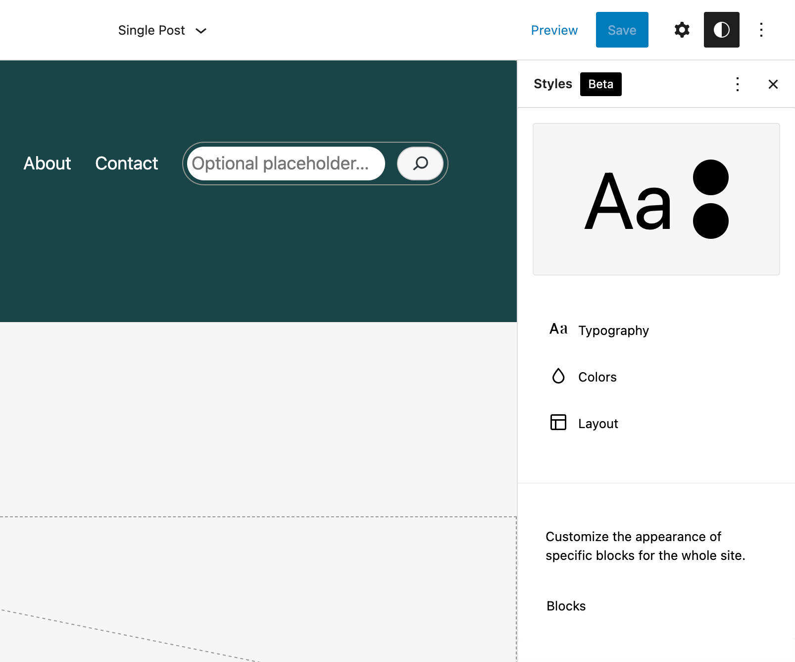 正如我们之前提到的,使用WordPress 5.9,您现在可以从全局样式界面自定义theme.json设置和样式。