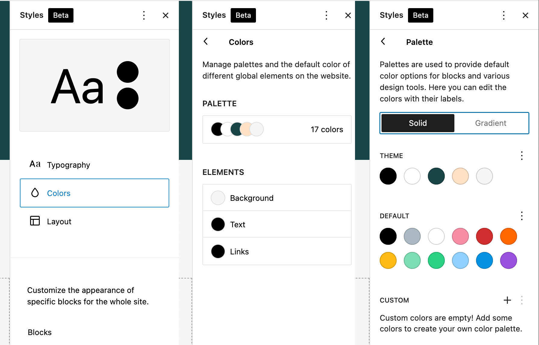 您可以在Carolina Nymark的深入概述中阅读更多关于theme.json颜色选项的信息。