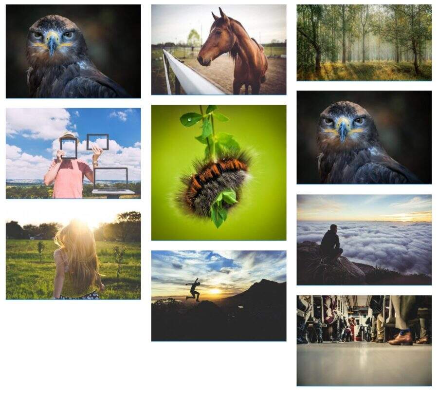 - 一系列不同的画廊格式,如平铺、马赛克和砖石。