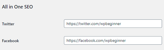 AIOSEO扩展了默认的WordPress作者配置文件,并允许您在元数据中添加社交媒体链接。