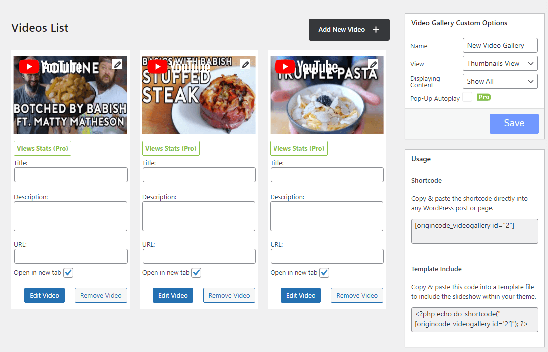 请记住,如果要将视频包含在图库中,则需要使用插件的内置工具添加视频。这意味着即使您的媒体库中已有视频,您也需要将其“添加”到插件的视频列表中,以便它识别该文件。
