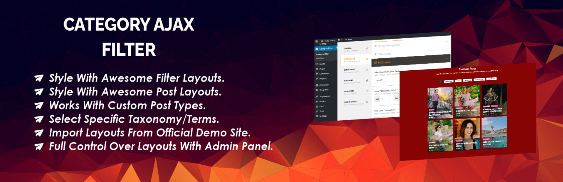 Filter Posts by Category是一个评价很高的Ajax分类目录类别筛选插件。该插件支持通过使用简单的短代码在网站的任何位置显示文章和自定义筛选器。