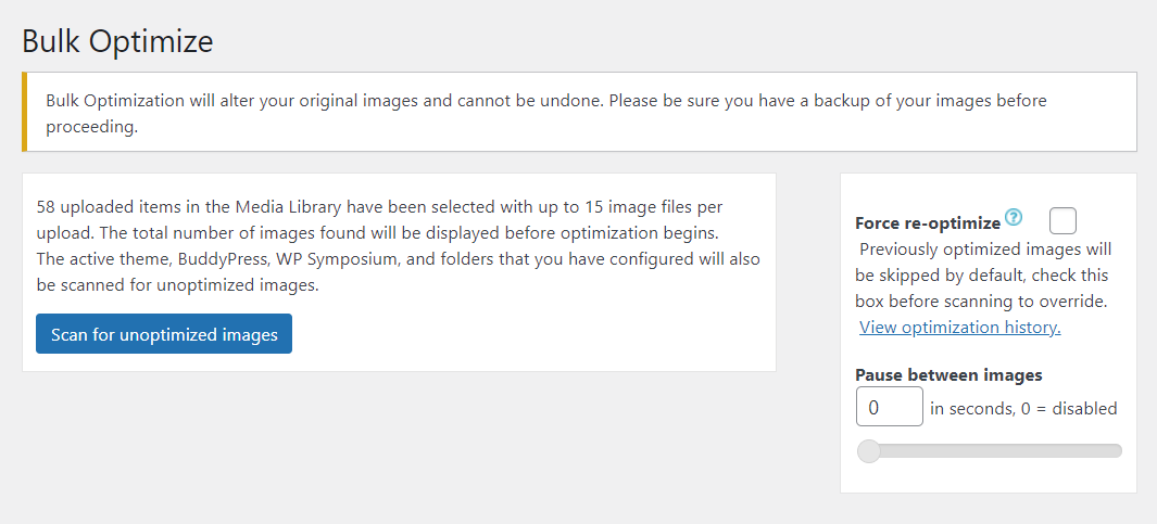 您还可以使用其批量优化器来压缩媒体库中的现有图像: