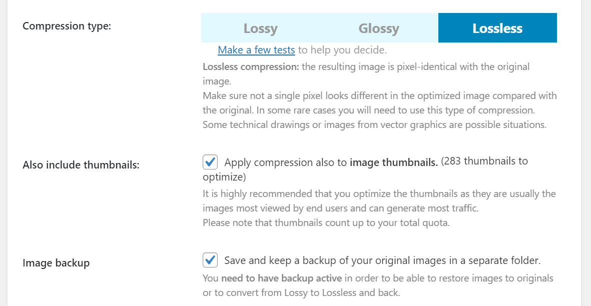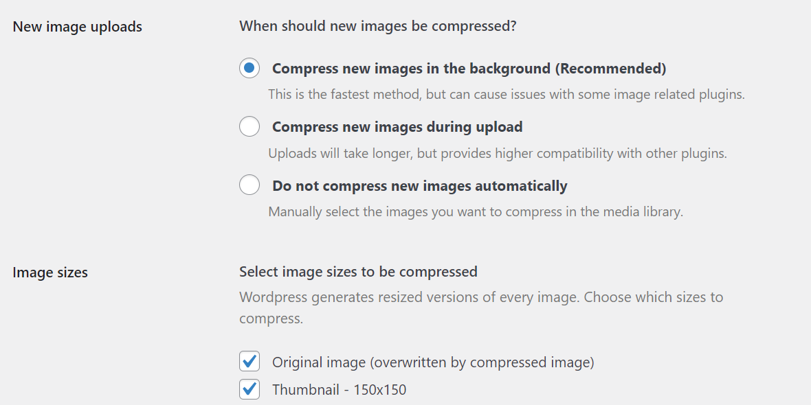WP-Optimize可让您完全控制图像优化设置。但是,它不包含批量压缩现有文件的选项,因此它最适合新网站。