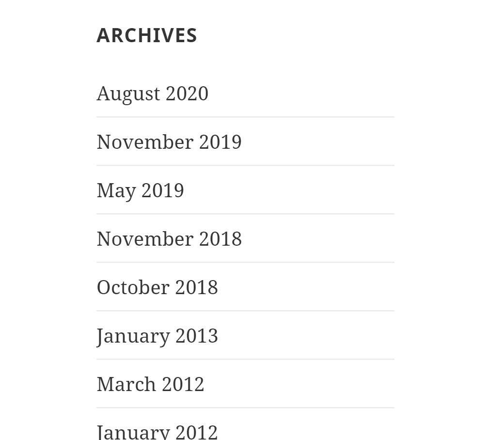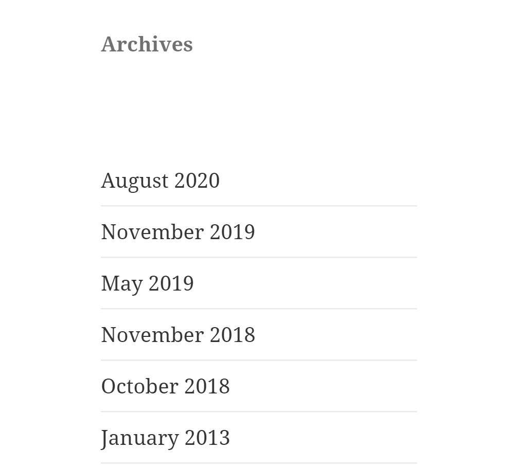 例如,在使用“Twenty Fifteen”主题时,基于区块的“存档”小工具(第一幅图像)与经典的“存档”小工具(第二幅图像)进行比较:
