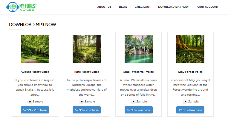 Easy Digital Downloads(EDD)是一个WordPress电子商务插件,通过销售数字产品为您提供了一种通过网站获利的简单方法。 有了它,您可以直接从您的网站销售电子书,PDF,图像,插件和其他软件。 您还可以添加缩略图图像和音乐样本,例如My Forest Voices,甚至可以添加关于每次下载的小摘录,以便客户知道他们正在购买什么。