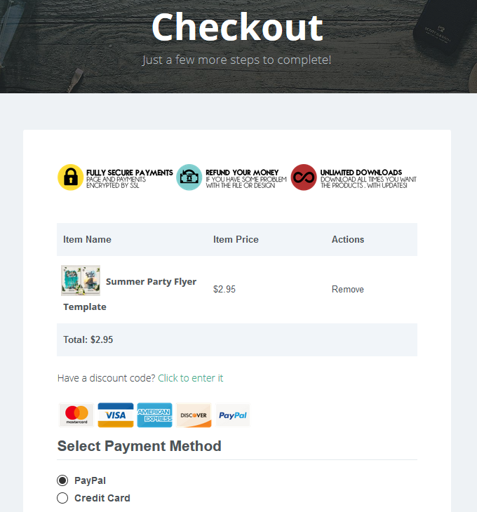 更不用说流行的支付网关PayPal Standard和Amazon Payments免费附带插件。 另外,正如Graphicfy所见,您也可以接受主要的信用卡。