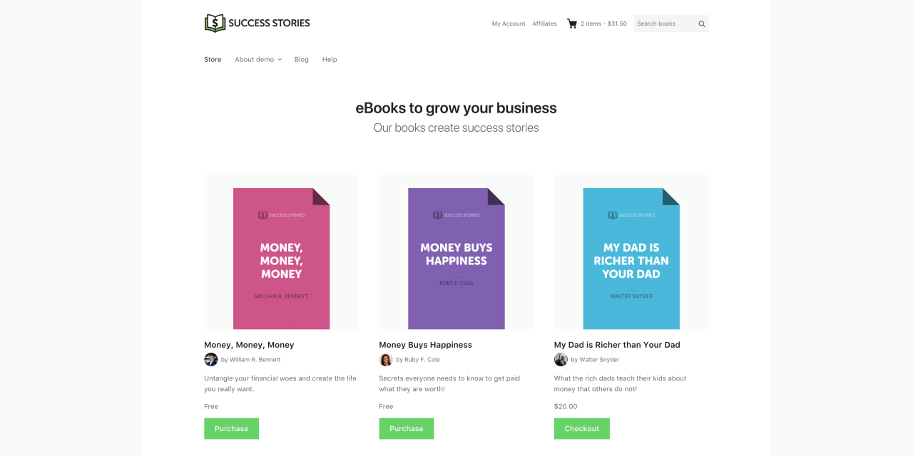您可以直接通过网站为访客提供电子书,PDF,模板等。 该插件支持主流的支付网关,如PayPal Standard和Amazon Payments,并提供更多高级版本的选项,使其成为人们可以信任的电子商务网站。 此插件将帮助您轻松管理在线商店,以便您可以专注于销售。