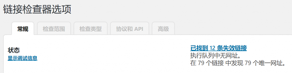 启用插件后,点击仪表盘菜单的“设置-链接检查器”,可以看到插件已经开始工作了,如下图所示: