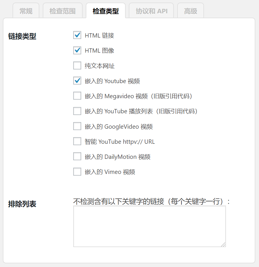Broken Link Checker设置