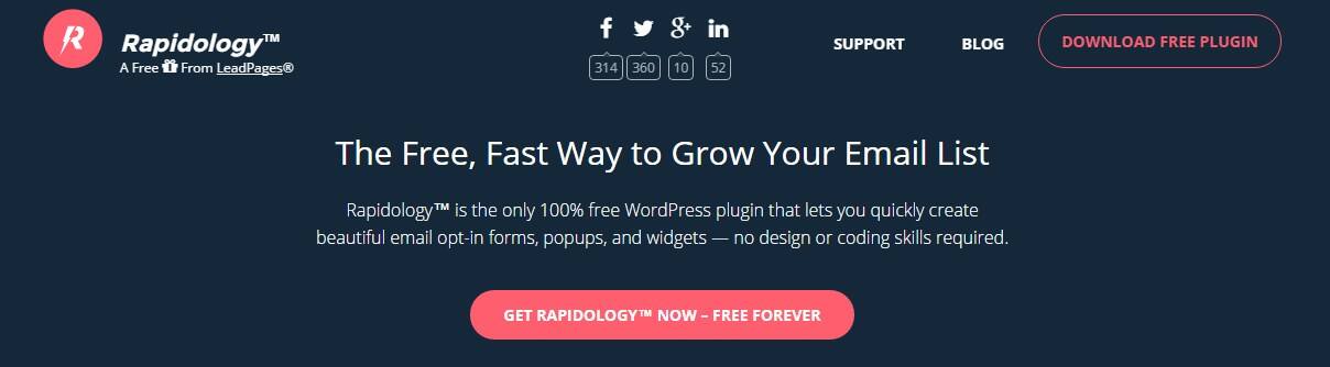Rapidology是一款必备免费WordPress插件,可让您在网站上添加多个表单。 这些表单可以是弹出窗口,幻灯片,内联,小部件等。 所有表单都是完全可拆分测试的,您可以将它们与您使用的任何电子邮件服务集成(MailChimp等)