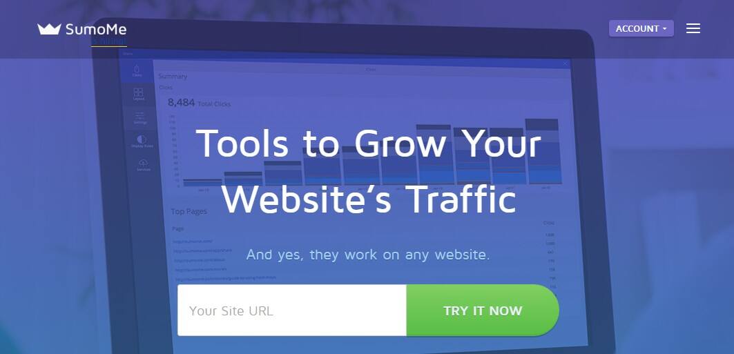 SumoMe是一个伟大的一体化在线营销工具。 它可以与任何网站系统(不仅仅是WordPress)集成,它为您提供了大量有用的功能,如:选择加入表单,欢迎页面,分析模块,社交媒体按钮和共享机制,甚至是联系表单。