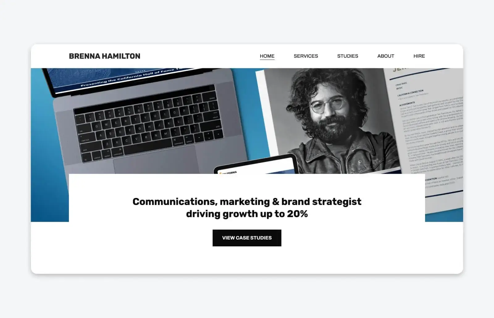 帮助 Brenna 从众多作品中脱颖而出的一点是她如何支持自己作品的影响力。在她的作品集中,有一整页都是她过去客户的案例研究,不仅展示了她所做的工作,还展示了她的工作所带来的实际效果。