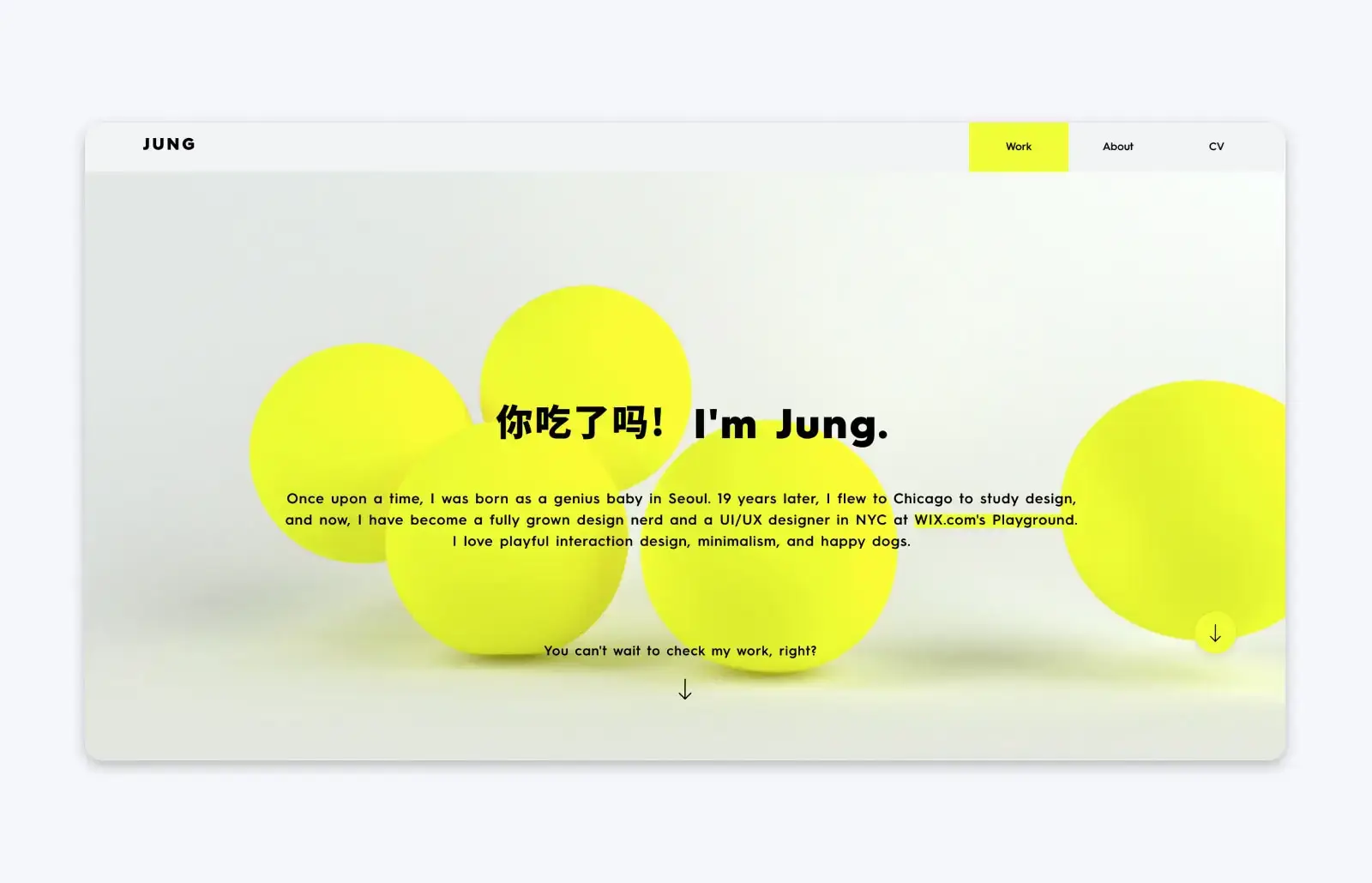 这个小功能可以让访客真正了解 Jung 是谁以及他关心什么,为他的作品集注入了大量个性,同时也使其更加有效。