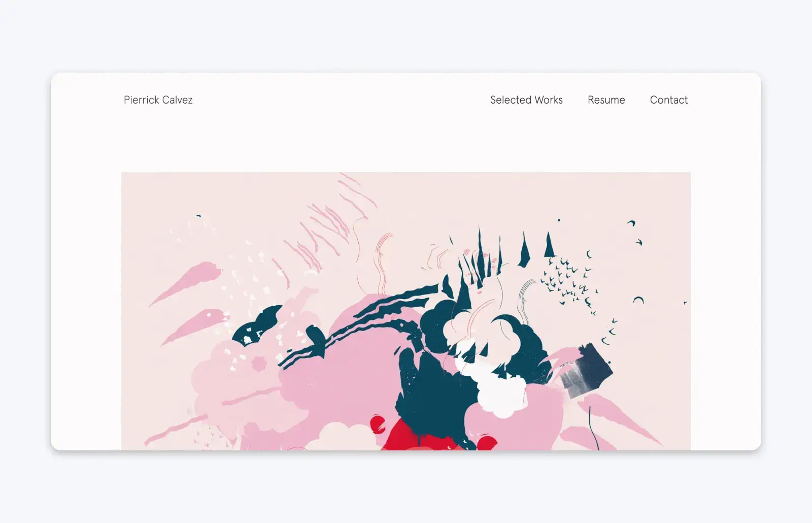 但更巧妙的是,皮耶瑞克的作品集同时也是一家电子商务商店。如果他的作品有售,访客只需点击几下,就可以在页面上购买。他的作品集是传播他的艺术并在此过程中实现销售的绝佳方式。