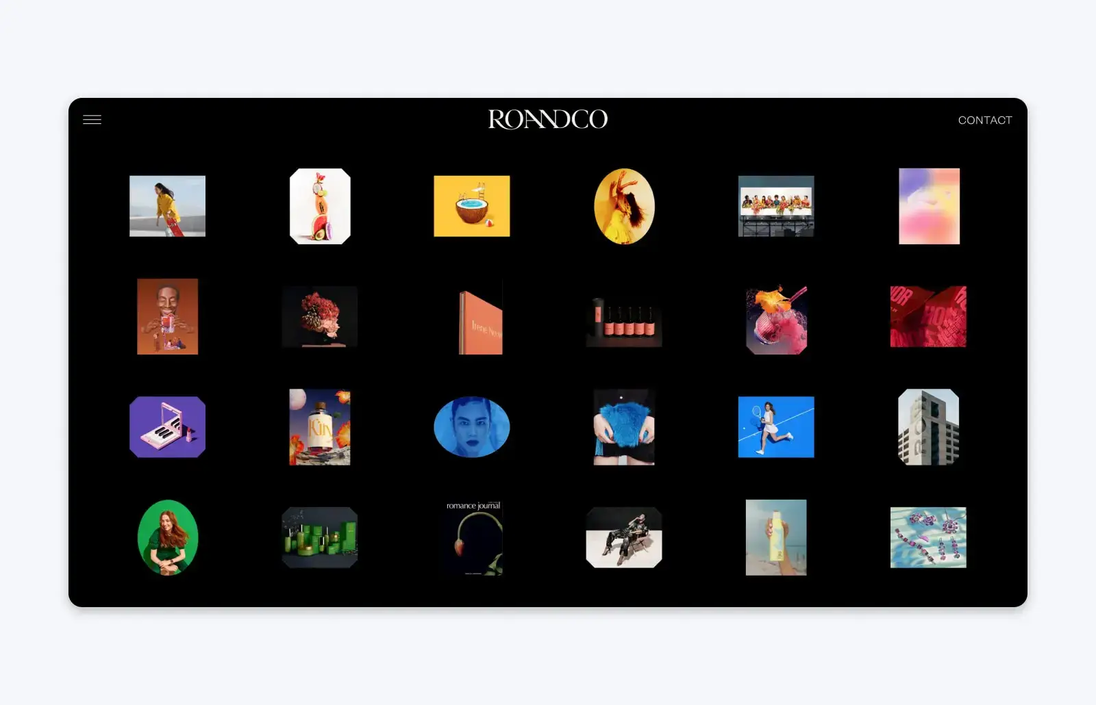 位于纽约的设计工作室 RoAndCo 由创意总监 Roanne Adams 创立。该作品集网站通过视觉愉悦的网格布局、分屏图形、全屏视频和其他引人注目的设计元素,真正捕捉到了 Roanne 的编辑经验。