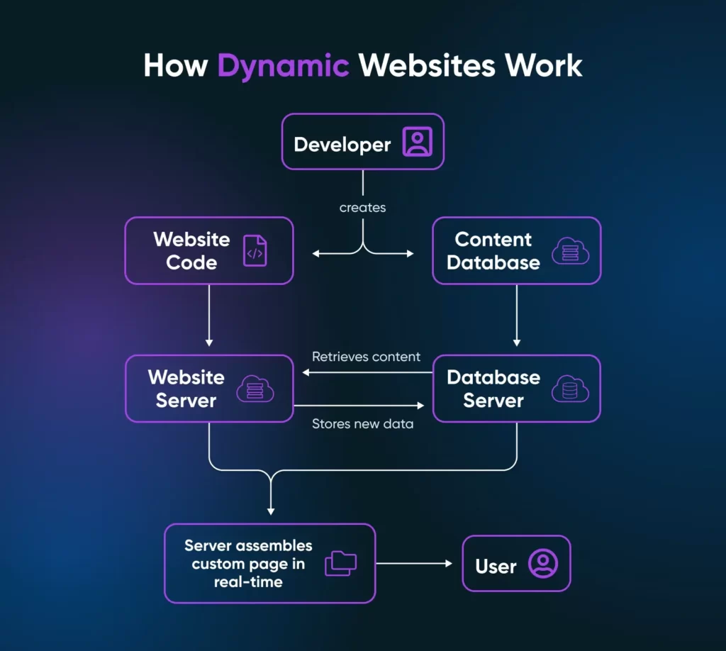 动态网站通常包含内容管理系统(CMS)(如 WordPress!),使更新变得简单。非技术团队成员可以通过用户友好的控制面板添加、编辑或删除内容,而无需接触代码。