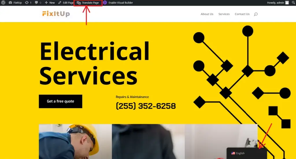 添加翻译的方法是进入网站的任何页面,点击顶部栏中的“Translate Page”按钮: