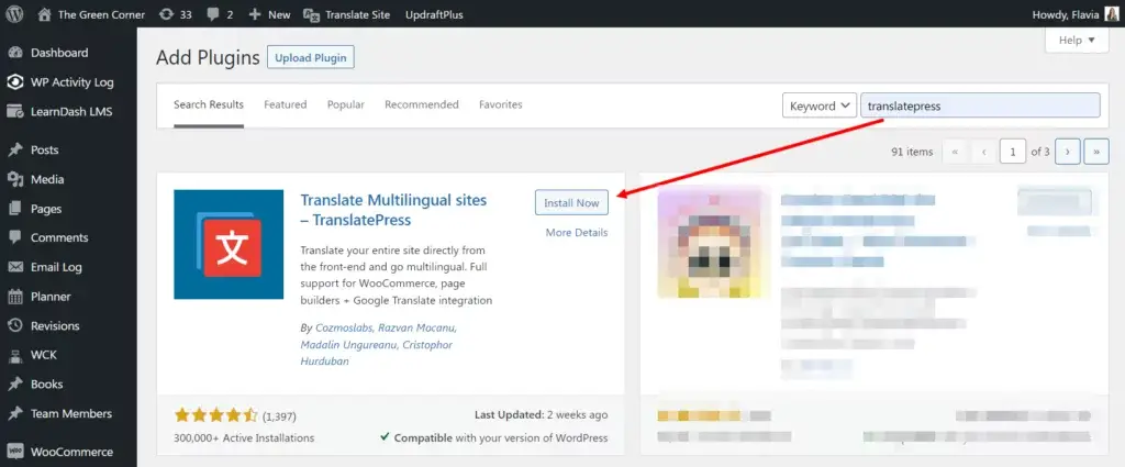 您需要做的第一件事就是安装免费的 TranslatePress 插件。