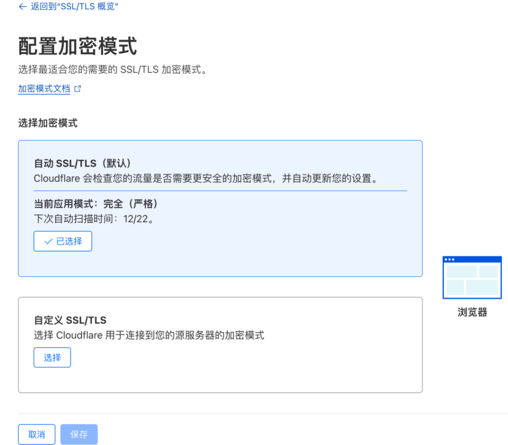 - 选择加密模式:完整(严格)或完整(仅限SSL源站拉取)