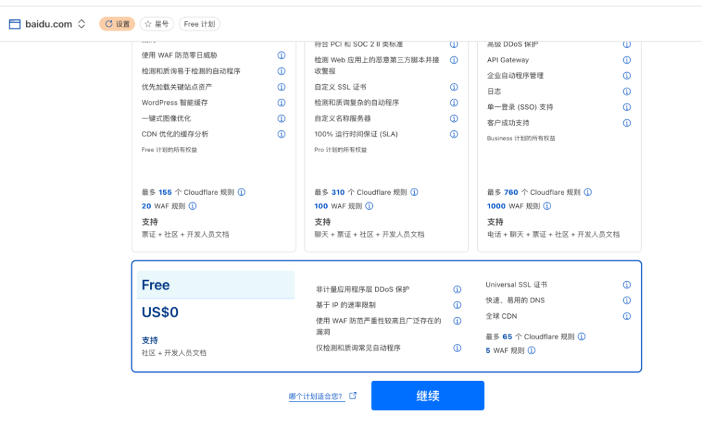 - 通用 SSL:为使用 Cloudflare 的所有域提供免费 SSL 证书。