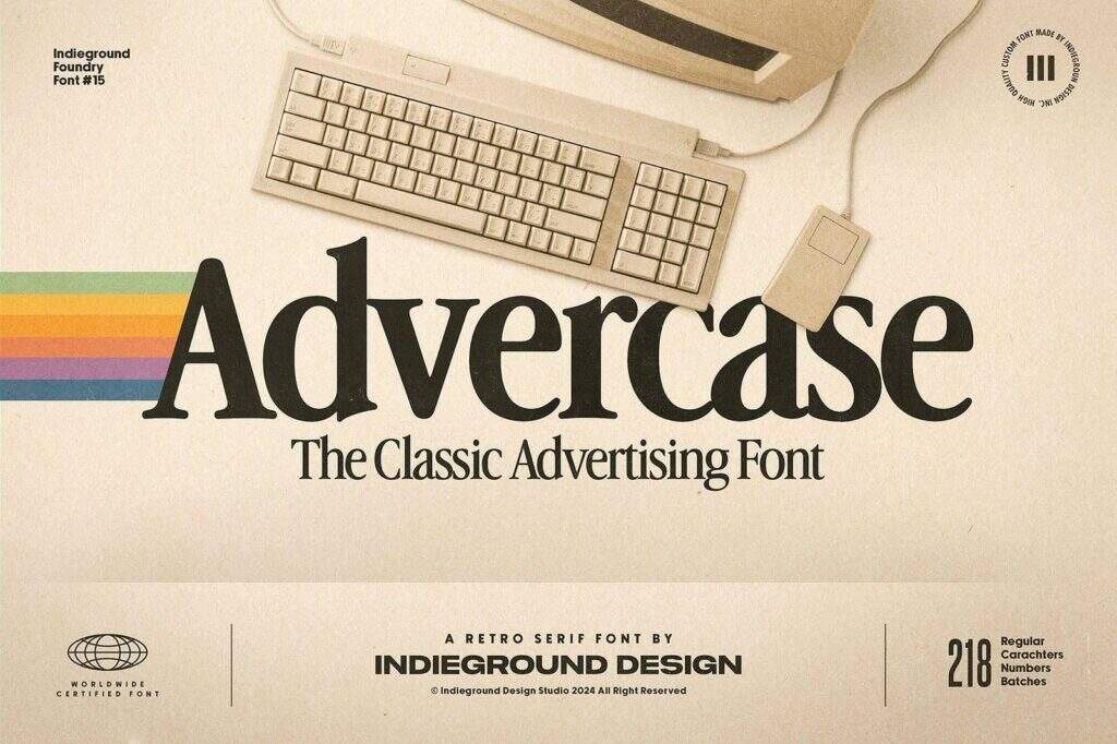 Advercase 字体是一款复古衬线字体,融合了复古魅力与现代气息。它由 Indieground 团队设计,非常适合需要怀旧而优雅氛围的项目,从复古灵感的广告到现代创意设计,不一而足。其永恒的风格使其成为为任何项目增添特色的多功能选择。