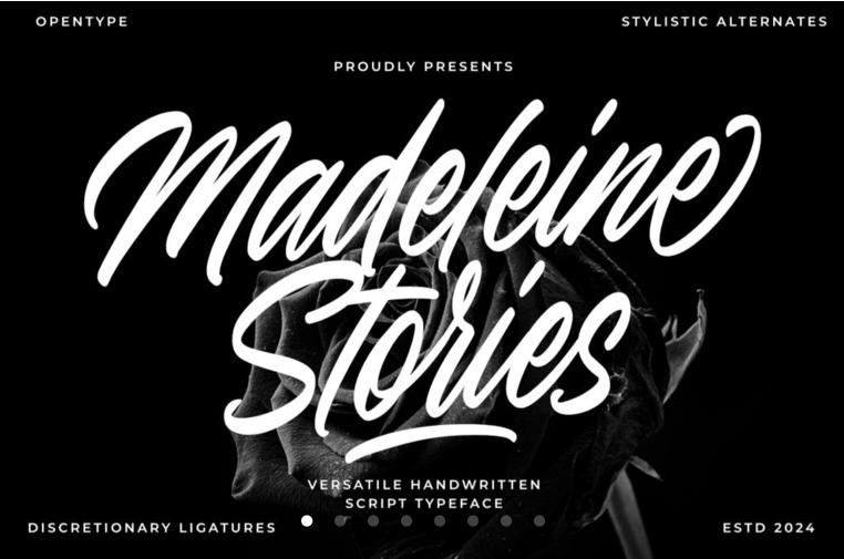 Madeleine Stories 字体是一种制作精美的手写脚本字体,体现了优雅、温暖和多功能性。凭借流畅的手写笔画和精致的细节,这款字体给人既个性又精致的感觉,非常适合各种创意项目。