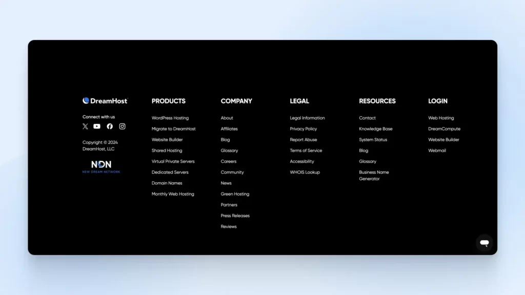 最后,不要忘记在网站页脚加入导航栏。经过优化的页脚可使转化率提高 50%,尤其是如果您在页脚中加入了联系表单或 CTA(如电子邮件列表的注册链接)。