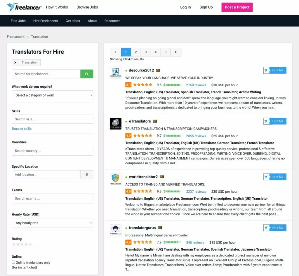 与 Upwork 一样,Freelancer 也是一个通用的自由职业者市场,在这里您可以找到大量的自由翻译人员以及所有其他类型的自由职业者。