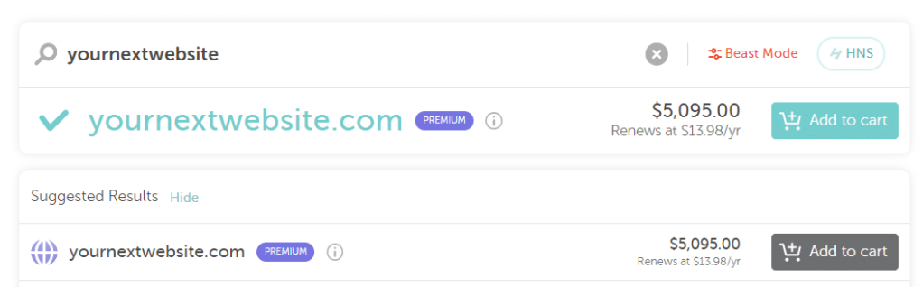对于新网站,我们通常建议不要在域名上花太多钱。除非域名与现有品牌相关联,否则您通常可以找到一个不需要花费数百或数千美元的替代域名。
