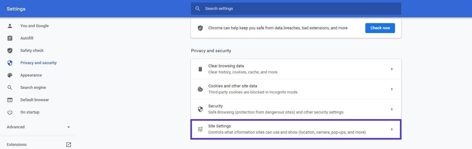 接下来,前往 “网站设置” 并点击进入通知页面。