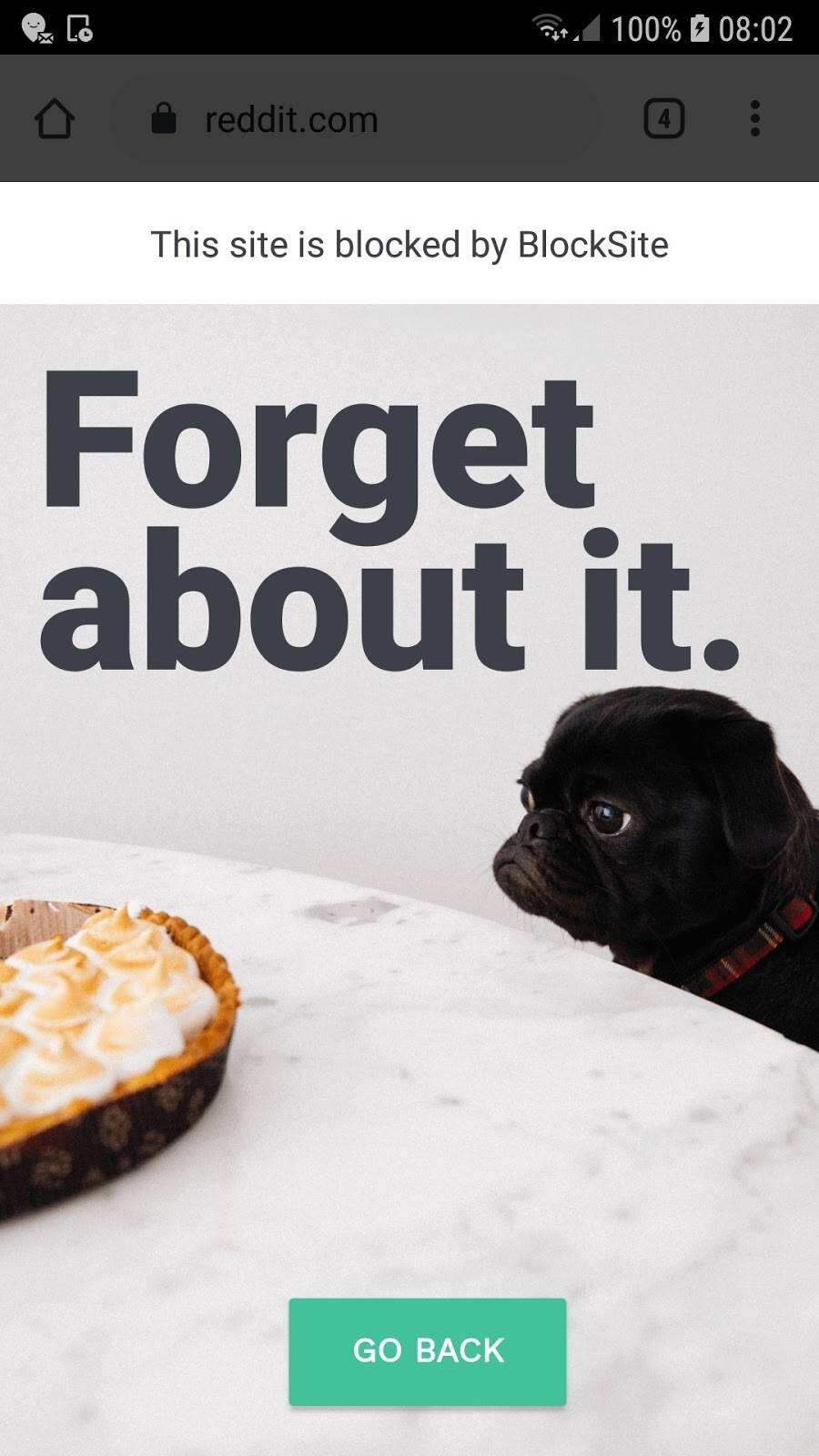 如果您尝试访问被屏蔽的网站,您会看到与台式电脑上一样的失望小狗。