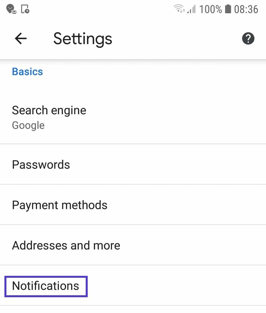 Chrome 设置– 通知