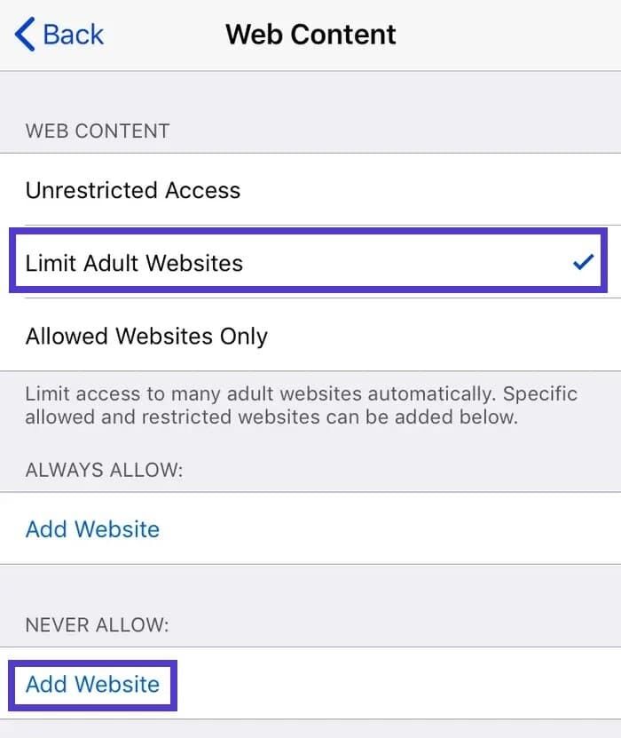 当你将网站添加到列表中后,无论连接到家庭 Wifi 还是数据计划,你甚至都无法开始加载这些网站。