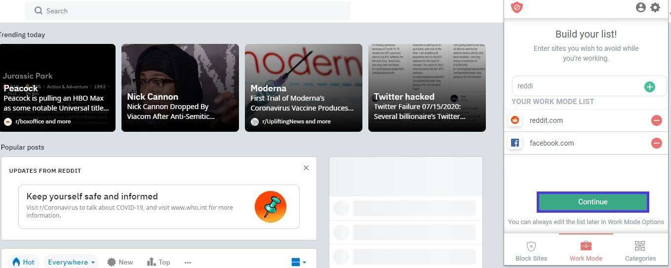 现在,如果你想在工作日中访问 Reddit,就会看到这个选项弹出。