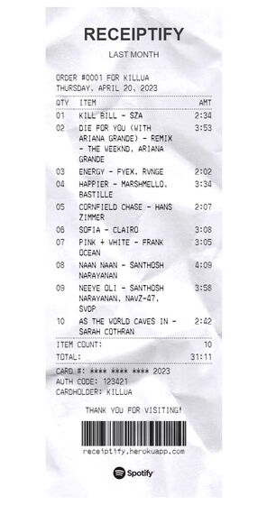 试用 Receiptify 生成您最喜爱歌曲的收据