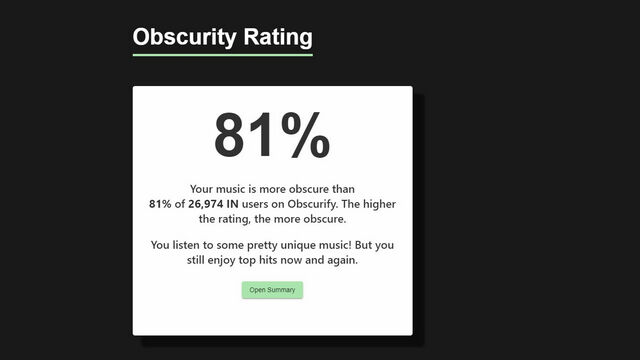 2. 登录后,向下滚动,您将看到与您所在国家的 Obscurify 用户数量相关的晦涩度评级。