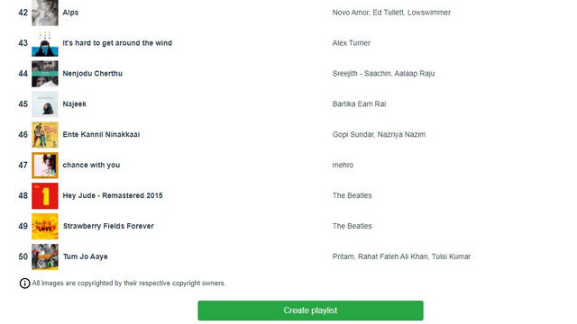 3. 与 Volt.fm 一样,您可以将热门曲目保存为播放列表。为此,请向下滚动并点击 “Create playlist” 按钮。
