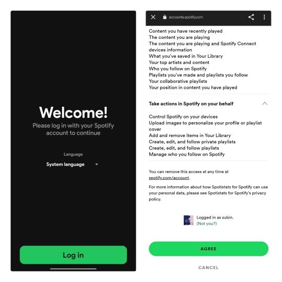 1. 另一个检查 Spotify 统计数据的工具是 Stats.fm(前身为 Spotistats)。您可以在 Android(下载)和 iOS(下载)上使用该应用查看您的热门曲目、艺术家、专辑等信息。要开始使用,请使用 Spotify 账户登录,并允许访问您的账户。