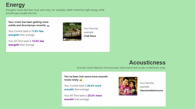 4. 该网站还能显示你所听歌曲的情绪,包括快乐、舞蹈性、活力和原声等类别。