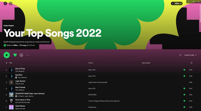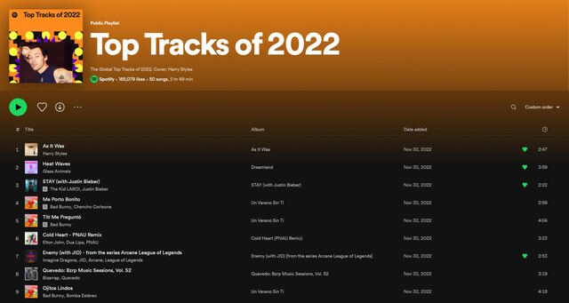 1. 访问此链接并点击 “Your Top Songs 2022″,即可进入包含您去年所有热门歌曲的播放列表。