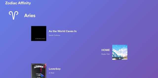 1. 如果你是占星家,就应该看看这个 Zodiac affinity 网站。只需先用 Spotify 账户登录即可。