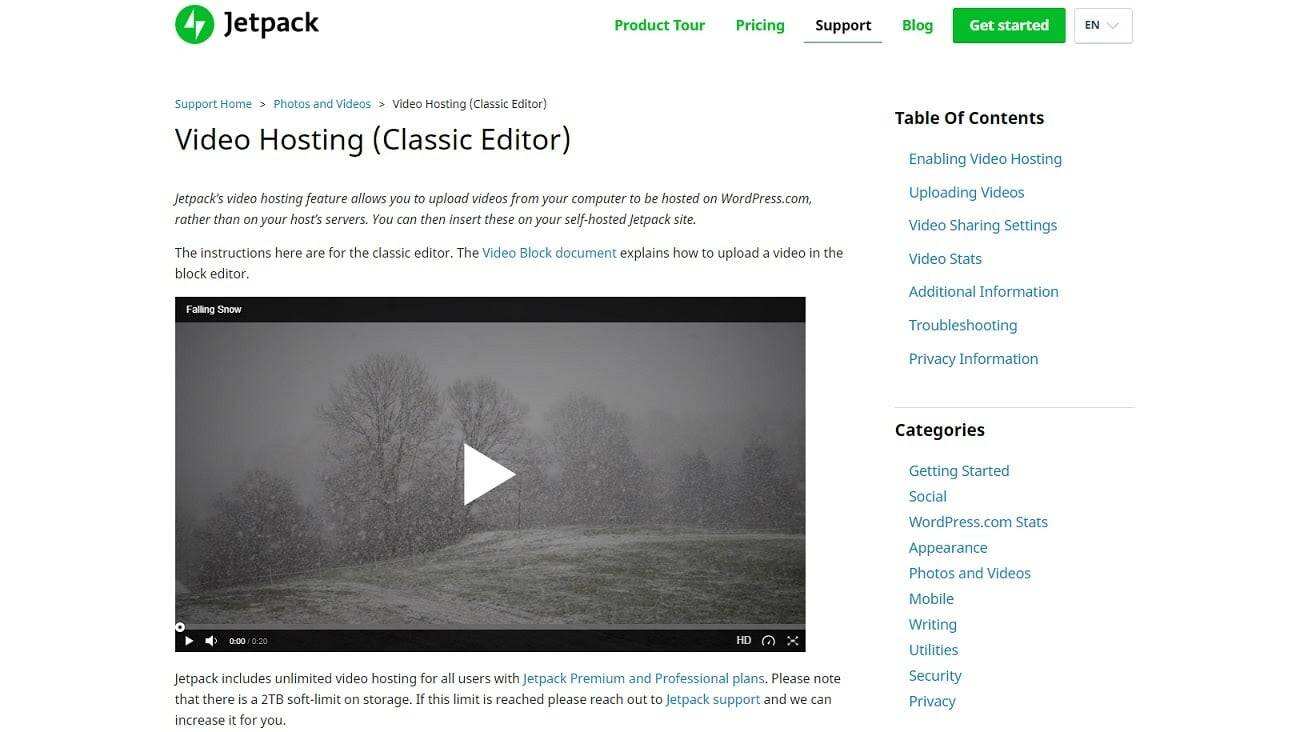 对于我们的WordPress爱好者来说,如果只是想让一个WordPress插件来完成这项工作,那就不要再看了: Jetpack for WordPress在他们的高级计划中包括视频托管,价格低至11.97美元/月。