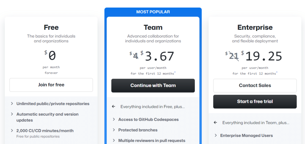 在撰写本文时,GitHub的团队计划起价为每个用户每月3.67美元: